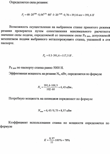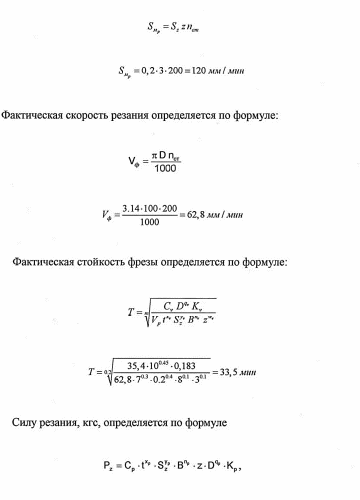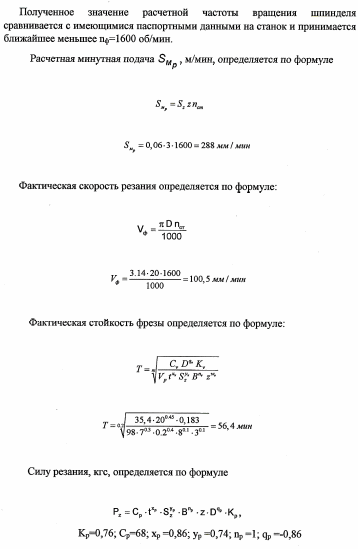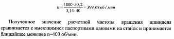 Полученное значение расчетной частоты вращения шпинделя сравнивается с имеющимися паспортными данными на станок и принимается ближайшее меньшее nф=200 об/мин.