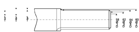 На схеме (рисунке 29) изображены более подробные размеры. Где D2 фактический диаметр изношенной поверхности, D2=60 мм; D1 диаметр после предварительной механической обработки, D1=58 мм; D4 диаметр после восстановления (до окончательной механической обработки), D4=64 мм; D3 диаметр после окончательной механической обработки, Dз=62 мм. Т1 толщина снимаемого слоя при предварительной механической обработки, Т1=1 мм; Т2 толщина наплавляемого слоя, Т2=2 мм; Тз толщина снимаемого слоя при окончательной механической обработки, Тз=l мм.