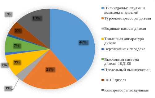Рисунок 1.4 – ТОП-3 отказов по дизельному цеху