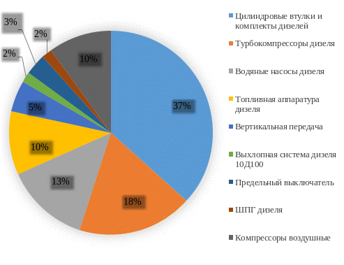 исунок 1.2 – Количество отказов оборудования по типу дизеля