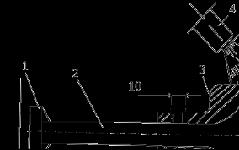 Рисунок 3.2 – Схема напыления посадочного места тарелки клапана: 1 – вращатель устройства «Киев-7»; 2 – клапан; 3 – защитный кожух; 4 – плазмотрон