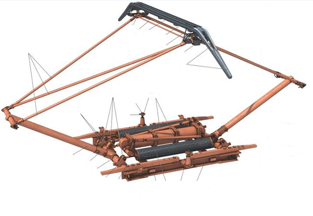 Разобрать верхний узел токоприемника и снять каретки. Отвернуть гайки, разобрать шарниры верхней рамы.