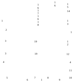 Рисунок 5.9 – Схема предлагаемого расположения оборудования на участке по ремонту токоприемников: 1 – ящик с инструментами; 2 – моечная машина; 3 – стеллаж для токоприемников; 4 – верстак слесарный; 5 – аргонодуговая сварка; 6 – стенд для испытания пружин токоприемников; 7 – стенд для испытания пневмопривода; 8 – стенд для разборки, сборки пневмопривода; 9 – накопитель кареток; 10 – стенд для ремонта кареток; 11 – стенд для испытания пружин кареток; 12 – накопитель готовой продукции; 13 – стеллаж для полозов токоприемников; 14 – стенд для отчистки полозов; 15 – стенд для рихтовки полозов; 16 – стенд для ремонта полозов; 17 – рабочий стол для ремонта полозов; 18 – шаблон для правки полозов; 19 – стенд для ремонта токоприемников