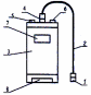 1 – пьезокерамический датчик с разъемом, прикладываемый торцом к корпусу подшипникового узла и снимающий акустико - эмиссионный сигнал от работающего подшипникового узла; 2 – соединительный кабель с разъемами; 3 – корпус, содержащий измерительный блок; 4 – гнездо подключения соединительного кабеля; 5 – кнопка включения – выключения прибора; 6 – кнопка «ПИК» при нажатии показывает максимальные значения числа; 7 – окно дисплея; 8 – аккумуляторный отсек.