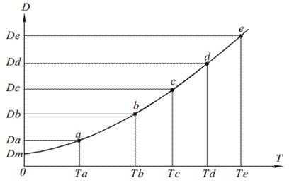 Кривая Dm – А – В – С – D – Е в координатах D (показания дисплея) и Т (суммарное время работы в часах с момента установки подшипника при рабочей нагрузке оборудования) называется «трендом».