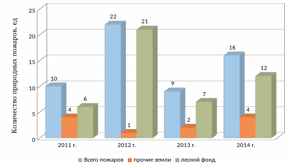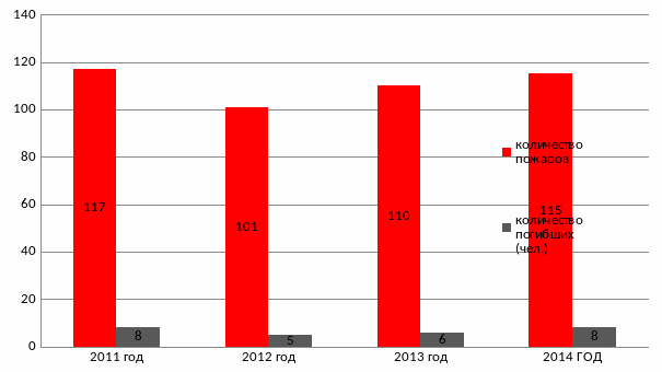 Статистика пожаров с 2011 по 2014 годы в соответствии с рисунком 2.6