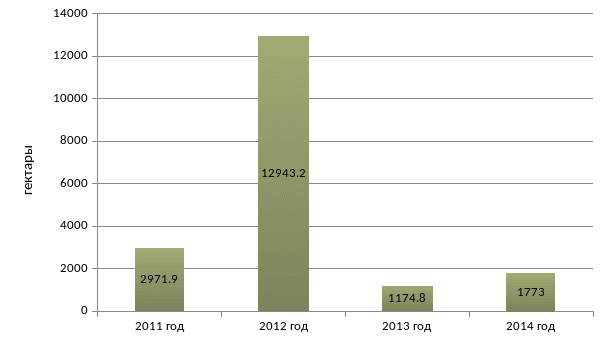 Рисунок 2.5 Площадь, пройденная пожарами за 2011-2014годы