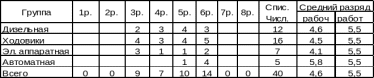 Таблица 1.9 - Средний разряд работ и рабочих слесарей по ремонту подвижного состава по цеху ТО-2