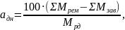 Общий процент неисправных локомотивов aн определяется как отношение неисправных локомотивов, одновременно находящихся в ремонте в депо и на заводе, к суммарному парку локомотивов, находящихся в распоряжении депо во всех видах движения и работы: