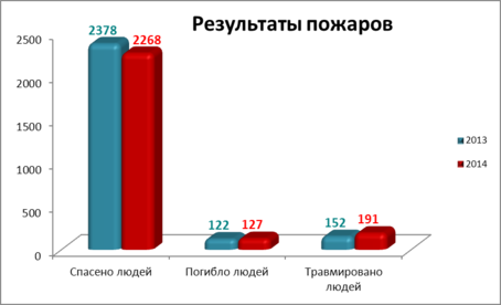 На пожарах за текущий период спасено 2268 человек, что на 4,63 % меньше, чем за аналогичный период прошлого года (АППГ-2378), погибло 127 человека, что на 4,1 % больше, чем за аналогичный период прошлого года (АППГ – 122), травмирован 191 человек, что на 25,66 % больше, чем за аналогичный период прошлого года (АППГ – 152).