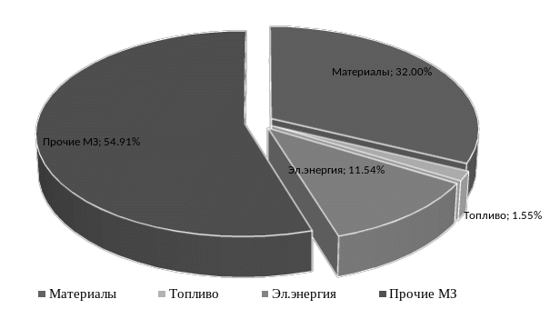 Рисунок 2.9 – Состав материальных затрат Дистанции по основной деятельности,