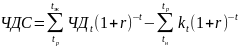Этот метод основан на сопоставлении величины исходной инвестиции (К) с общей суммой дисконтированных чистых денежных поступлений, генерируемых ею в течение прогнозируемого срока. Чистый доход, полученный от реализации проекта (ЧД) и чистый дисконтированный доход (ЧДД) соответственно рассчитываются по формулам: