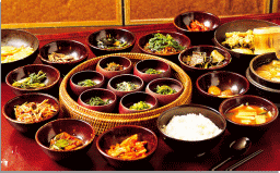 Во-первых, как известно, традиционно за едой корейцы сидят на полу за низким столом на подушках. Для нас долгое пребывание в таких позах весьма затруднительно.Положительный момент в том, что на корейском приёме не надо заботиться о ножах и вилках – придётся пользоваться только палочками. Главная сложность в том, что в корейском застольном этикете каждому блюду определено своё место. Все блюда подаются отдельно каждому на подносе. Все мелкие тарелки с едой ставятся справа, глубокие - слева, рис и суп - ближе к обедающему, закуски - у дальнего края подноса. Скромный званный ужин состоит из 5 перемен блюд. Рис, суп, 3-4 блюда с закусками. На официальных торжественных обедах подают полный набор блюд, он включает рис, два супа, 7-10 закусок, 2-3 десертных блюда и чай.