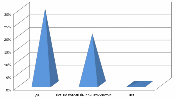 На второй вопрос «Принимали ли вы или ваши дети участие, в каких либо образовательных поездках» респонденты ответили: 30% да, 20% нет, но хотели бы принять участие в образовательных турах, 1 % нет.