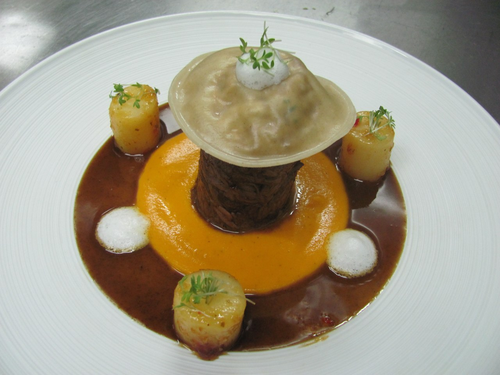 Волокна мяса томленые в вакууме сервис с питание пеной из грибов и муссом____520 питание руб.