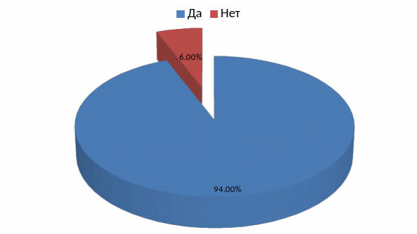 Кроме того, одной из задач исследования было выяснить, интересна ли студентам выездная практика. Как видно из рис.2.4 практически всем студентам (94%) интересна выездная практика.
