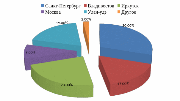 Таким образом, согласно данным представленным на рисунке 2.6, наиболее предпочтительными городами для респондентов является: Санкт- Петербург, Иркутск, Улан-Удэ, Владивосток. Среди других городов студентам интересно посещение в рамках практики таких городов как: Петропавловск-Камчатский, Сочи.