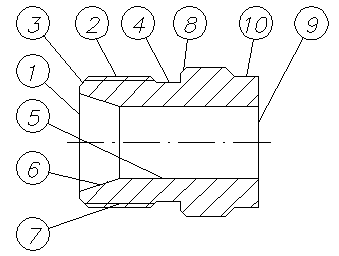 | 7 – резьбовая поверхность | Нарезание резьбы плашкой |