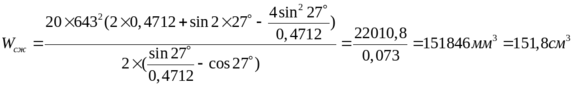 где: R = 643 мм – средний радиус кривизны сечения отвала;