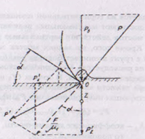 При этом реакция грунта Z на площадку затупления ножа О оказывается меньше, чем составляющая Рв от силы Р, действующей по нормали к ножу (рисунок 2.7). В силу этого суммарная сила Р’z действует вниз, вызывая самозатягивание отвала в грунт. Ведущие колёса автогрейдера находятся на пределе полного буксования.