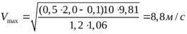 Максимальную скорость движения на поворотах по условию опрокидывания находят из формулы: