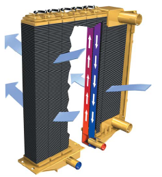 Удобство обслуживания. Модульная конструкция элементов радиатора позволяет удалять его отдельные элементы, не снимая весь радиатор, что сокращает затраты на ремонт и время простоя. Верхний бак, боковые каналы и единая уплотняющая поверхность делают систему AMOCS более надежной и легкой в обслуживании. Индикатор, расположенный сбоку, позволяет быстро производить сервисные проверки.