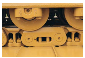 Выравнивающий брус. Выравнивающий брус с пальцами дает возможность рамам катков независимо перемещаться вниз или вверх, что обеспечивает более точное соответствие неровностям грунта и в то же время максимальную тягу и удобство работы оператора. Выравнивающий брус улучшенной конструкции имеет крепящиеся на болтах соединительные пальцы, что увеличивает срок службы и снижает время простоя. Кроме того, подобная конструкция повышает удобство.