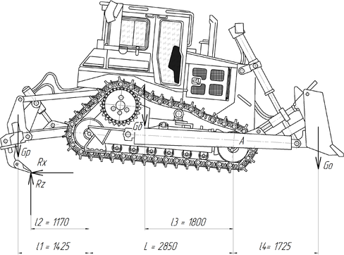 Для расчета вибровозбудителя необходимо определить усилие заглубления рыхлителя. Далее произведем расчет навесного рыхлителя плотных грунтов на бульдозере Caterpillar D6R XL.