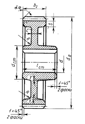 Основные параметры зубчатых колес (диаметр, ширина, модуль, число зубьев и пр.) определены при проектировании передач. Конструкция колес зависит главным образом от проектных размеров, материала, способа получения заготовки и масштаба производства.