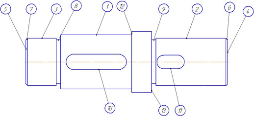 Схема нумерации поверхностей вала и его эскиз приведен на рисунке 4.1.