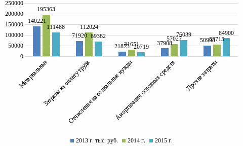 Рисунок 2.8 – Динамика затрат в 2013–2015 гг.