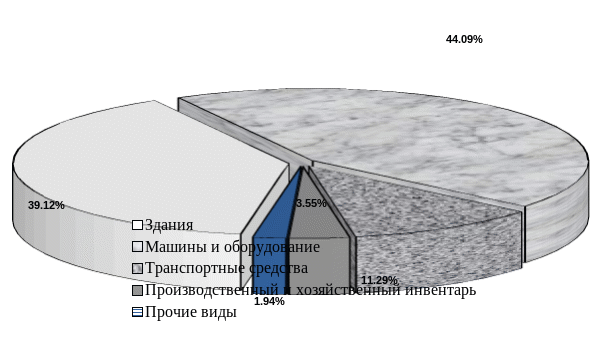 Среднегодовая стоимость зданий составила в отчетном году 1750 тыс. руб. или 36,89 % в общей стоимости основных фондов, что на 10 пункта и 2,23 пунктов меньше чем в 2013, 2014 годах, соответственно.