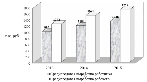 В 2015 году по сравнению с 2013 – 2014 годами наблюдаются темпы роста производительности труда, превышающие темпы роста оплаты труда, что свидетельствует об эффективном использовании фонда заработной платы предприятия.