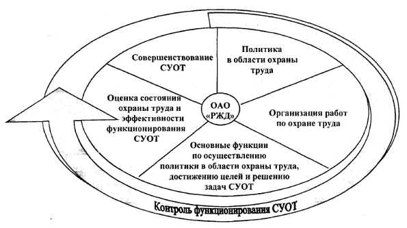 Основные элементы системы управления охраной труда в ОАО «РЖД» показаны на рисунке 1.1[1].