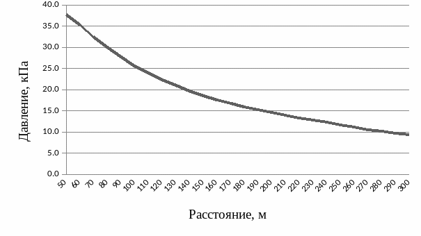 В соответствии с таблицей 3.1 [3], можно сделать выводы о характерах разрушения в зависимости от избыточного давления на разном расстоянии от центра взрыва.
