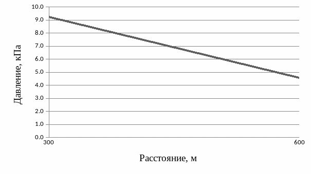 Рисунок 3.3 Затухание ударной волны с увеличением расстояния