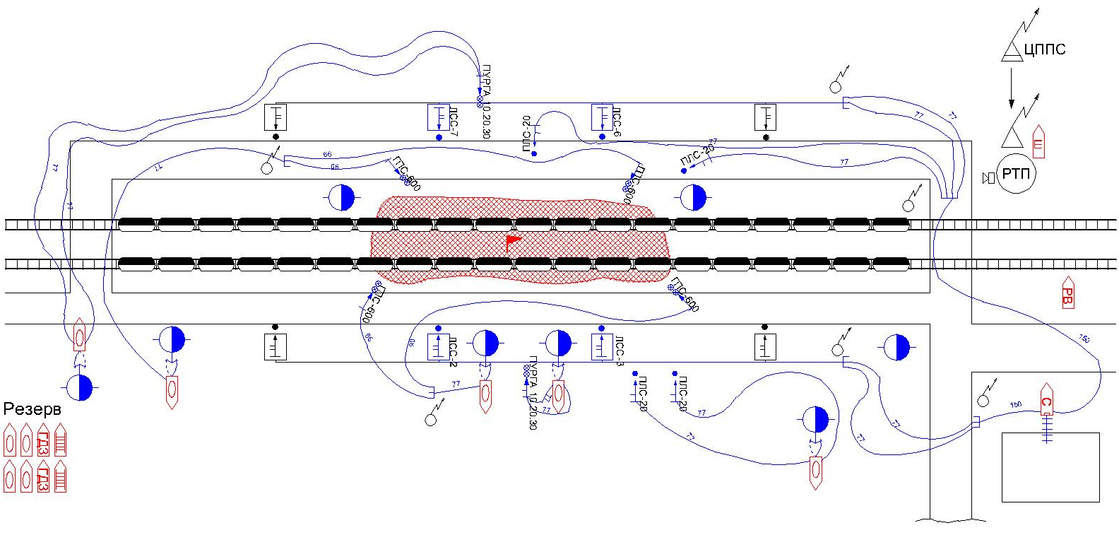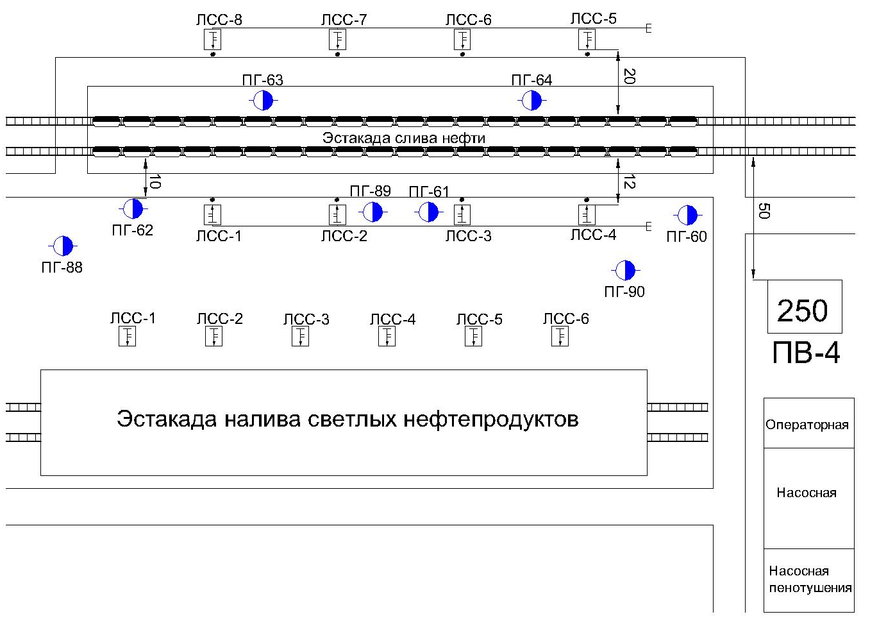Таким образом, для обеспечения охлаждения вагоноцистерн потребуется 8 стволов ПЛС-20, по 4 с каждой стороны эстакады.