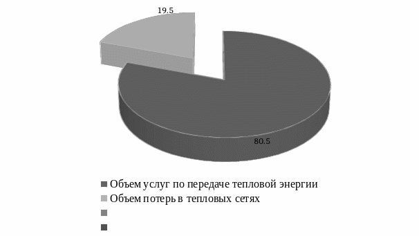 Объем услуг по передаче тепловой энергии составляет большую часть от общего отпуска тепловой энергии – 80,5%, что на 1,7% выше, чем в аналогичном 2013 г. На долю потерь в общем объеме приходится 19,5%. ОАО «НГТЭ» обеспечивает передачу выработанной тепловой энергии потребителям в объеме, определенном заказчиком.