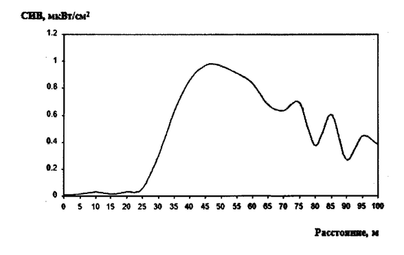 Уровни ЭМП (на высоте 2 м, азимутальное направление 0 град)