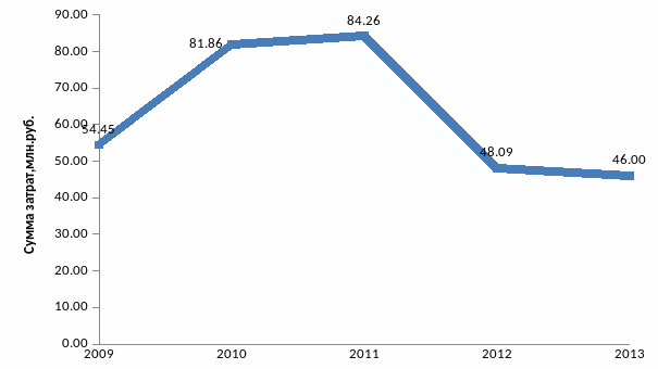 Рисунок 8.11 Сумма затрат на устранение производственного травматизма в Хабаровском крае 2009 – 2013 гг.