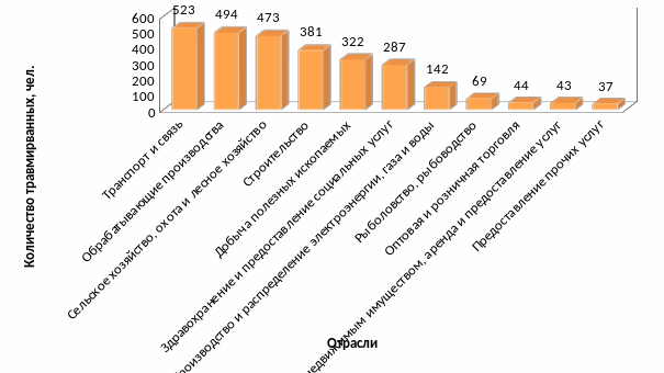 - транспорт и связь – 523 человека, что составляет 18,6% от общего производственного травматизма;