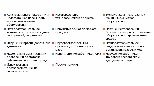 Основными причинами производственного травматизма со смертельным исходом в отраслях Хабаровского края за исследуемый период (2009 – 2013 гг.) являются: