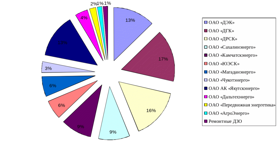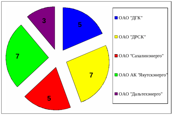 | ОАО «Дальтехэнерго» | 1 | 1 | 1 | - | - | 3 | 11,2 |