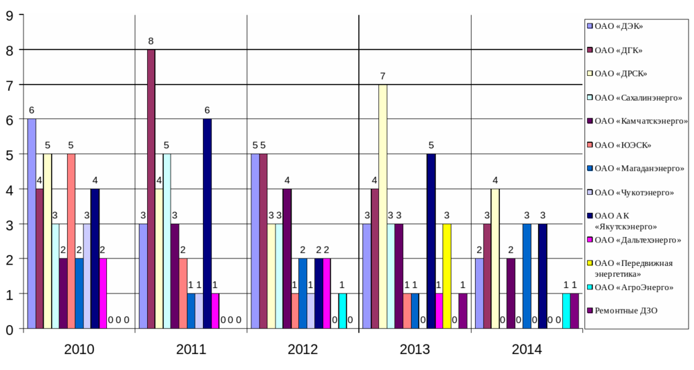 | ОАО «Дальтехэнерго» | 2 | 1 | 2 | 1 | - | 6 | 4 |