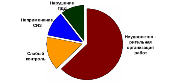 ативно – технических документов, устанавливающих правила, процедуры и критерии, направленные на сохранение жизни и здоровья работников процессе трудовой деятельности. Не менее значимую роль в количестве происшествий играет отсутствие со стороны руководящего персонала контроля над соблюдением работниками техники безопасности и применением ими средств индивидуальной защиты.