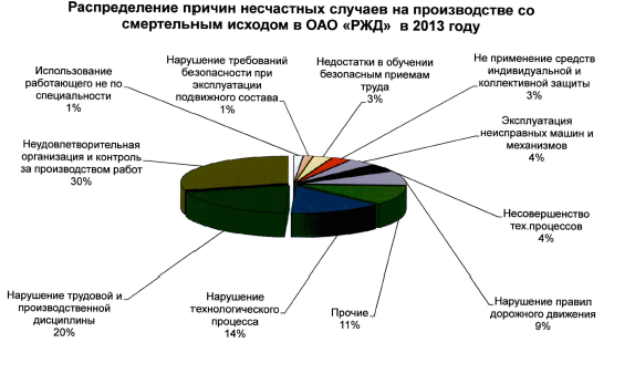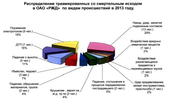 со смертельным исходом в ОАО «РЖД» в 2013 году [5]