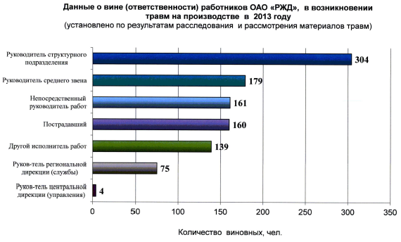 Рисунок 2.5 Данные о вине (ответственности) работников ОАО «РЖД»,