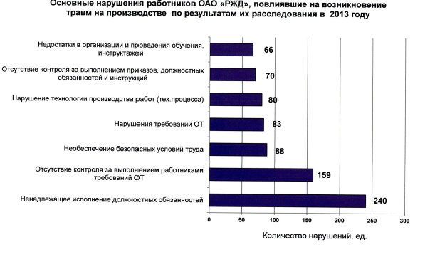 Анализ состояния условий и охраны труда в ОАО «РЖД» за 2013 год