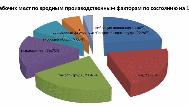 Рисунок 2.7 Распределение рабочих мест по вредным производственным