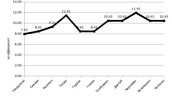 Рисунок 2.5 – Коэффициенты эффективности управления муниципальным образованием Магдагачинского района
